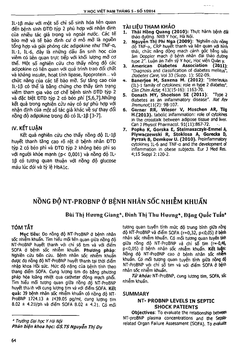 Objectives: To evaluate the relationship between NT-proBNP plasma concentrations and the Sepsisrelated Organ Failure Assessment (SOFA). To evaluate the relationship between NT-proBNP plasma concentrations and the cardiac output in septic patients. Methode: NT-proBNP, Cardiac output, SOFA score were evaluated in 39 septic shock patients. Blood serum NT-proBNP concentrations were determined in each patient on admission. Cardiac output measurement determined by thermodilution with pulmonary artery catheterization. The severity of organ dysfunction was estimated according to the SOFA score. Results: The mean NT-proBNP concentration; cardiac output and the mean SOFA score were 1724.13 + or - 1439.05 pg/ml; 8.02 + or - 4.211/ph and 8.02 + or - 4.21 points, respectively. The correlation between NT-proBNP level and cardiac output was r = 0.48 (p0.05). The correlation coefficient between NT-proBNP level and SOFA score was r