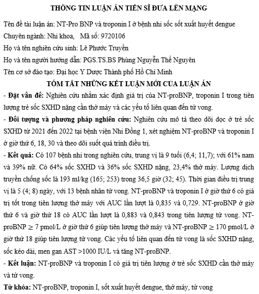NT-Pro BNP và troponin I ở bệnh nhi sốc sốt xuất huyết dengue