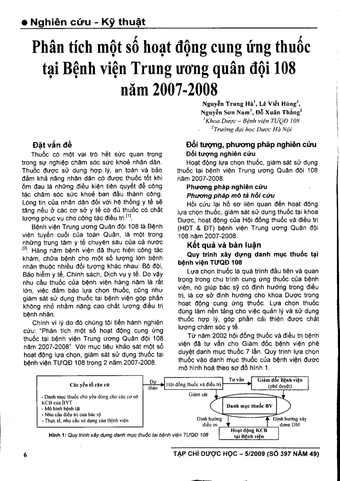 Phân tích một số hoạt động cung ứng thuốc tại Bệnh viện Trung ương quân đội 108 năm 2007-2008