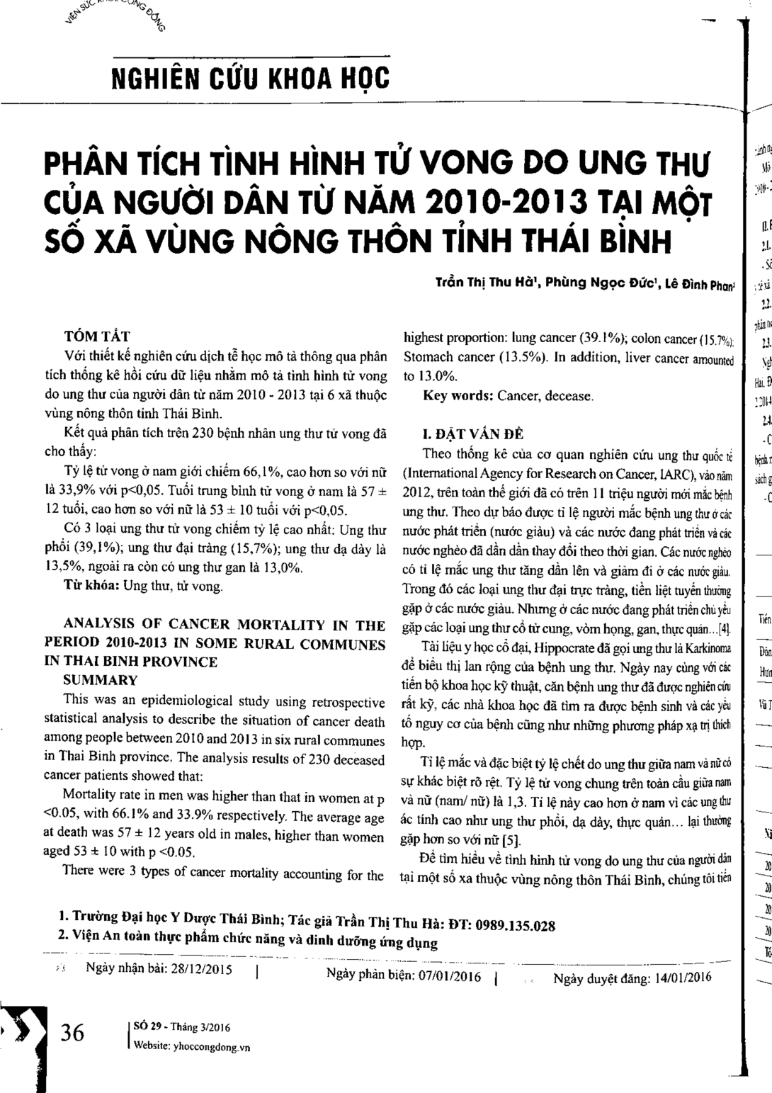 Phân tích tình hình tử vong do ung thư của người dân từ năm 2010-2013 tại một số xã vùng nông thôn tỉnh Thái Bình