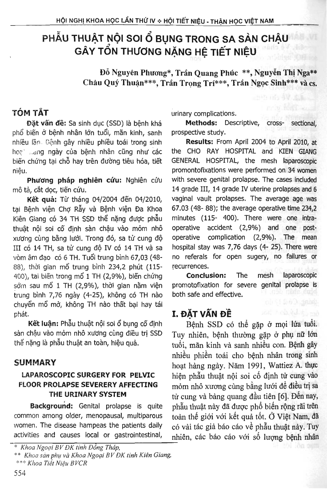 Phẫu thuật nội soi ổ bụng trong sa sàn chậu gây tổn thương nặng hệ tiết niệu