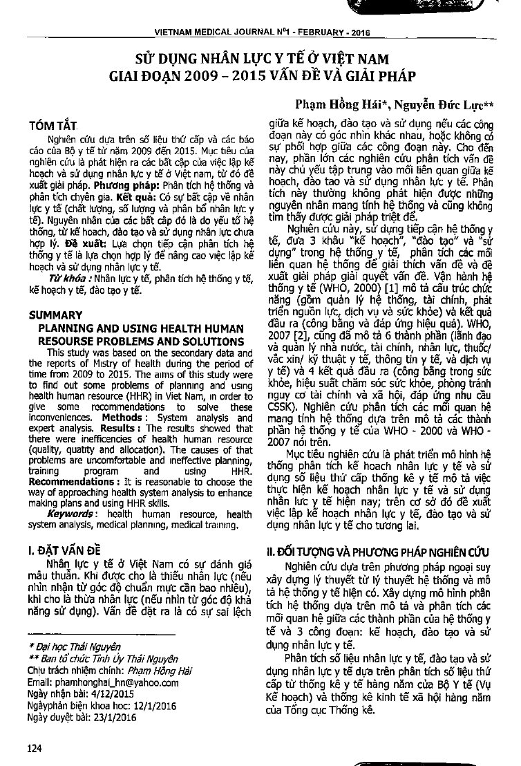 Sử dụng nhân lực y tế ở Việt Nam giai đoạn 2009-2015 - Vấn đề và giải pháp