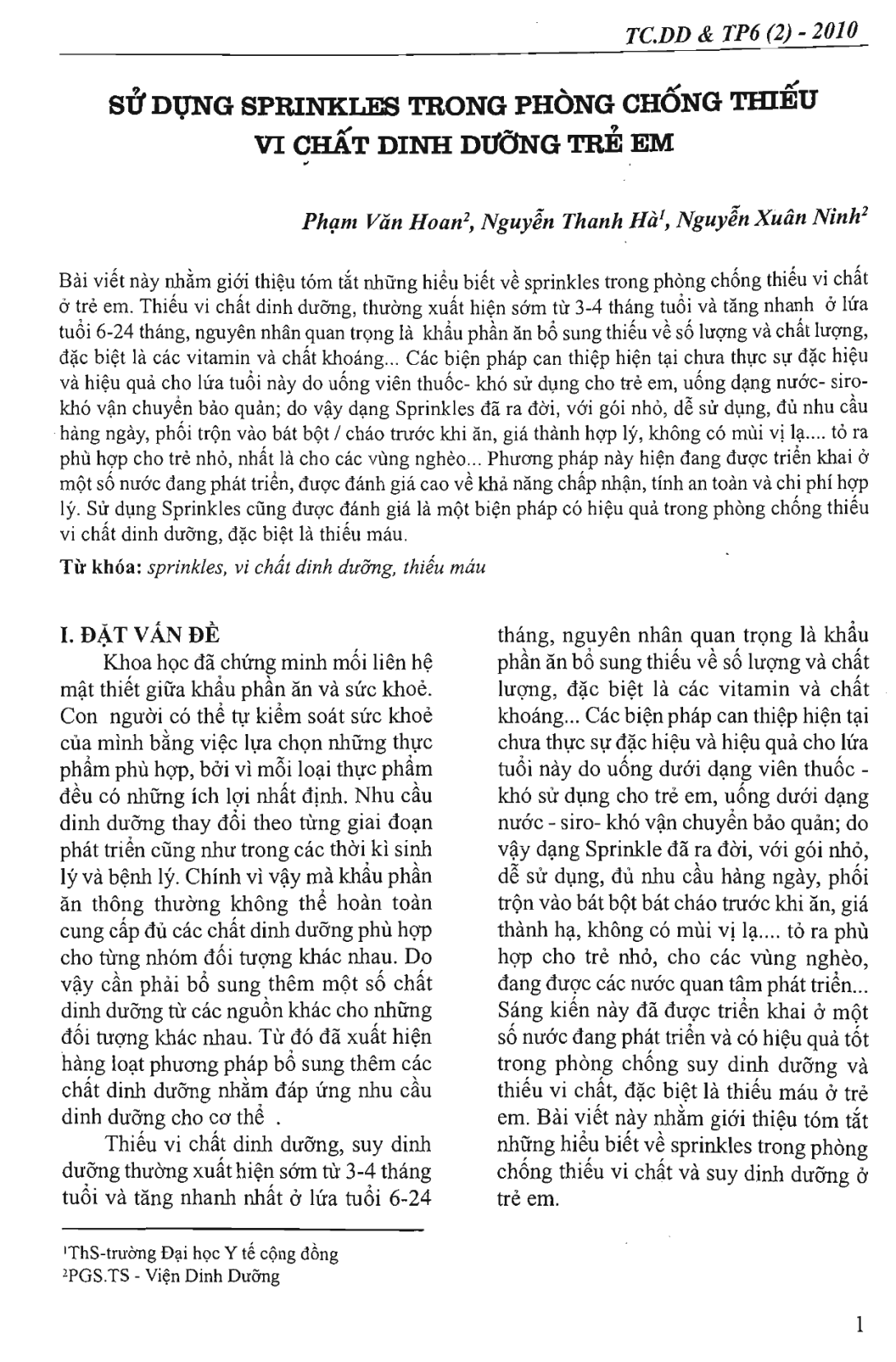 Sử dụng Sprinkles trong phòng chống thiếu vi chất dinh dưỡng trẻ em
