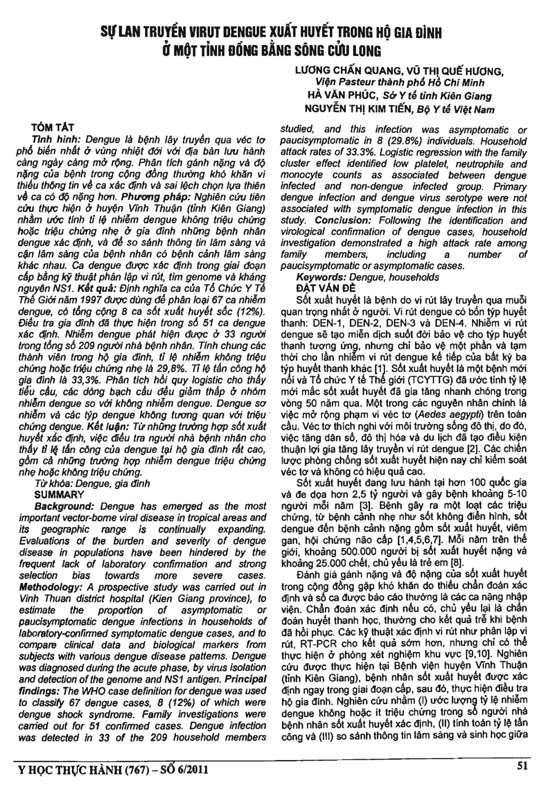 Sự lan nhanh virut Dengue xuất huyết trong hộ gia đình ở một số tỉnh đồng bằng sông Cửu Long