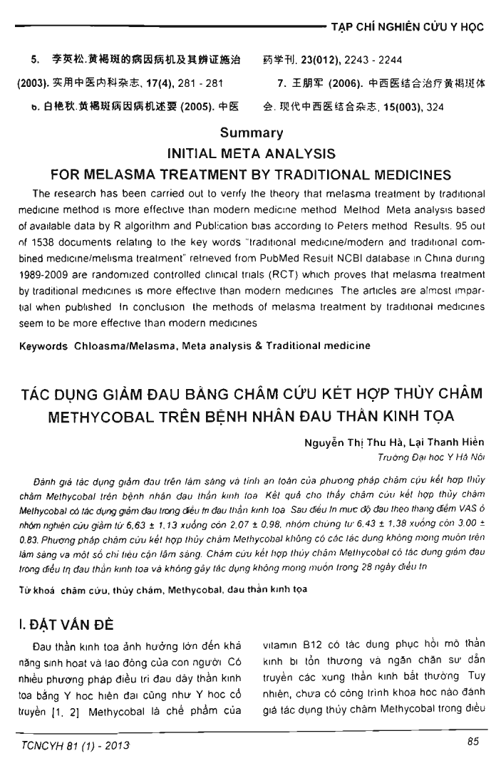 Tác dụng giảm đau bằng châm cứu kết hợp thủy châm methycobal trên bệnh nhân đau thần kinh tọa