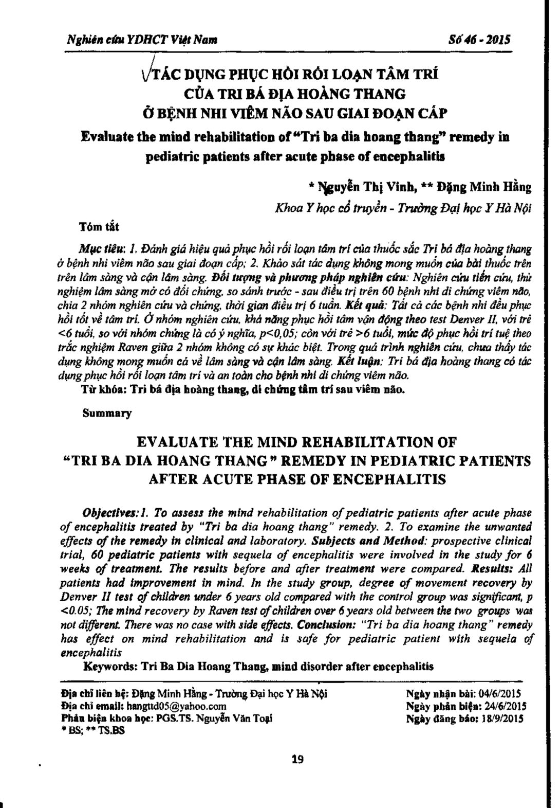Tác dụng phục hồi rối loạn tâm trí của tri bá địa hoàng thang ở bệnh nhi viêm não sau giai đoạn cấp