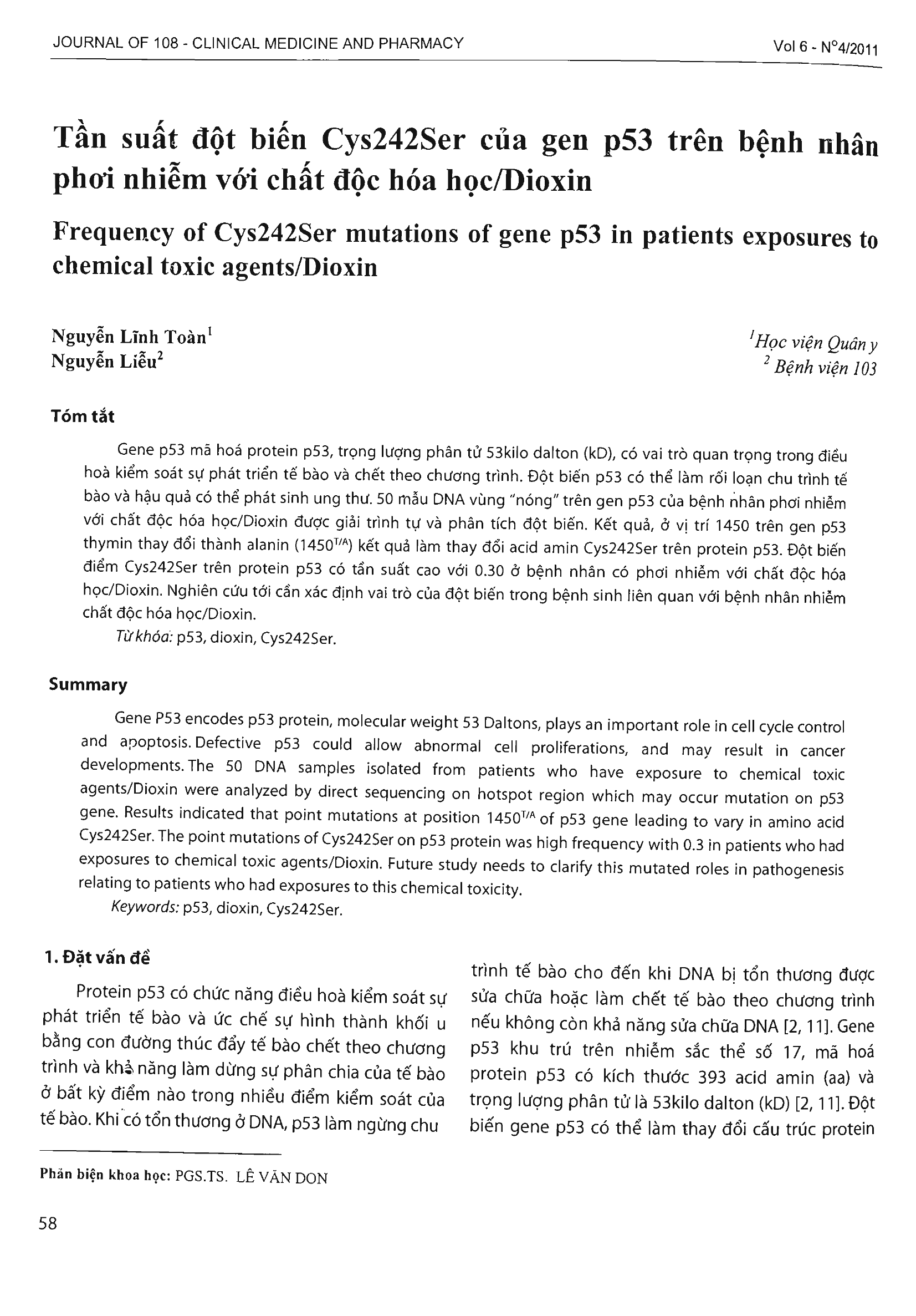 Tần suất đột biến Cys242Ser của gen p53 trên bệnh nhân phơi nhiễm với chất độc hóa học/Dioxin