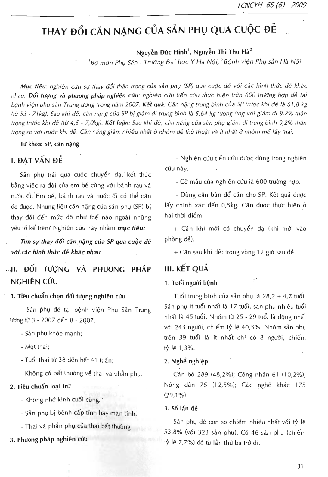 Thay đổi cân nặng của sản phụ qua cuộc đẻ