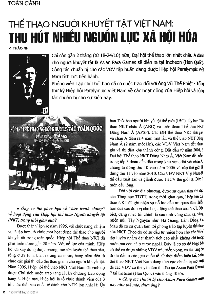 Thể thao người khuyết tật Việt Nam: Thu hút nhiều nguồn lực xã hội hoá