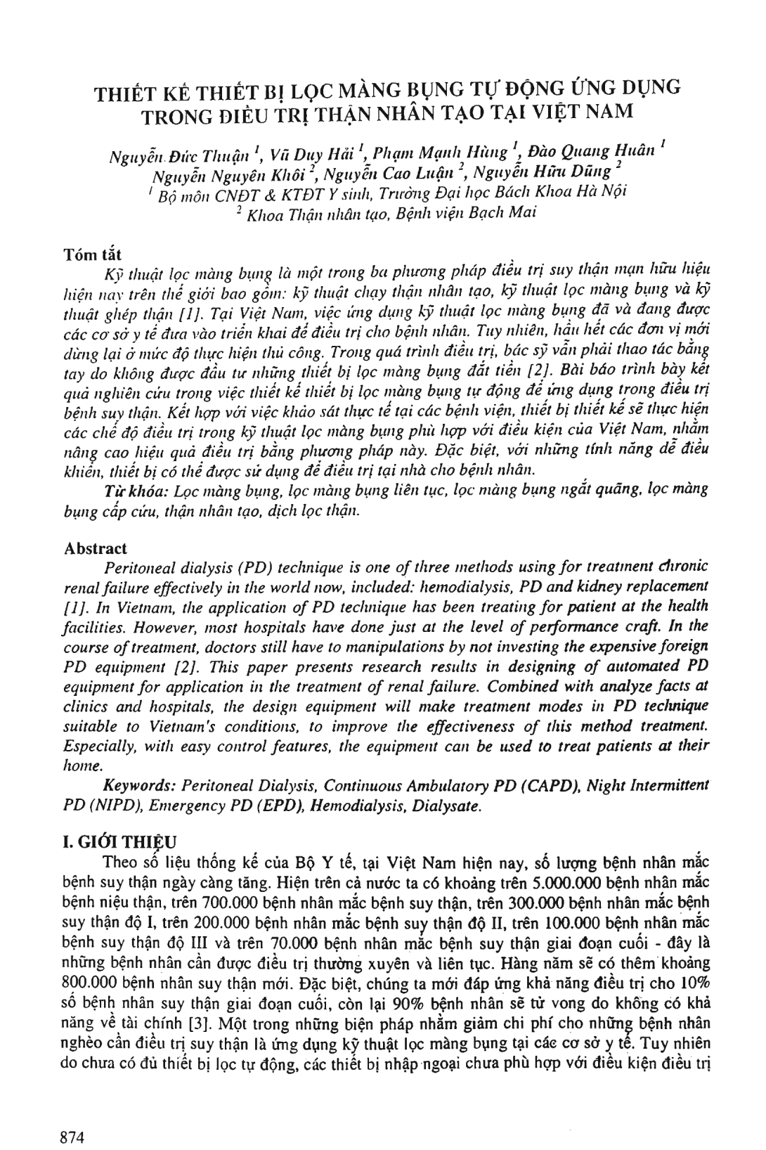 Thiết kế thiết bị lọc màng bụng tự động ứng dụng trong điều trị thận nhân tạo tại Việt Nam