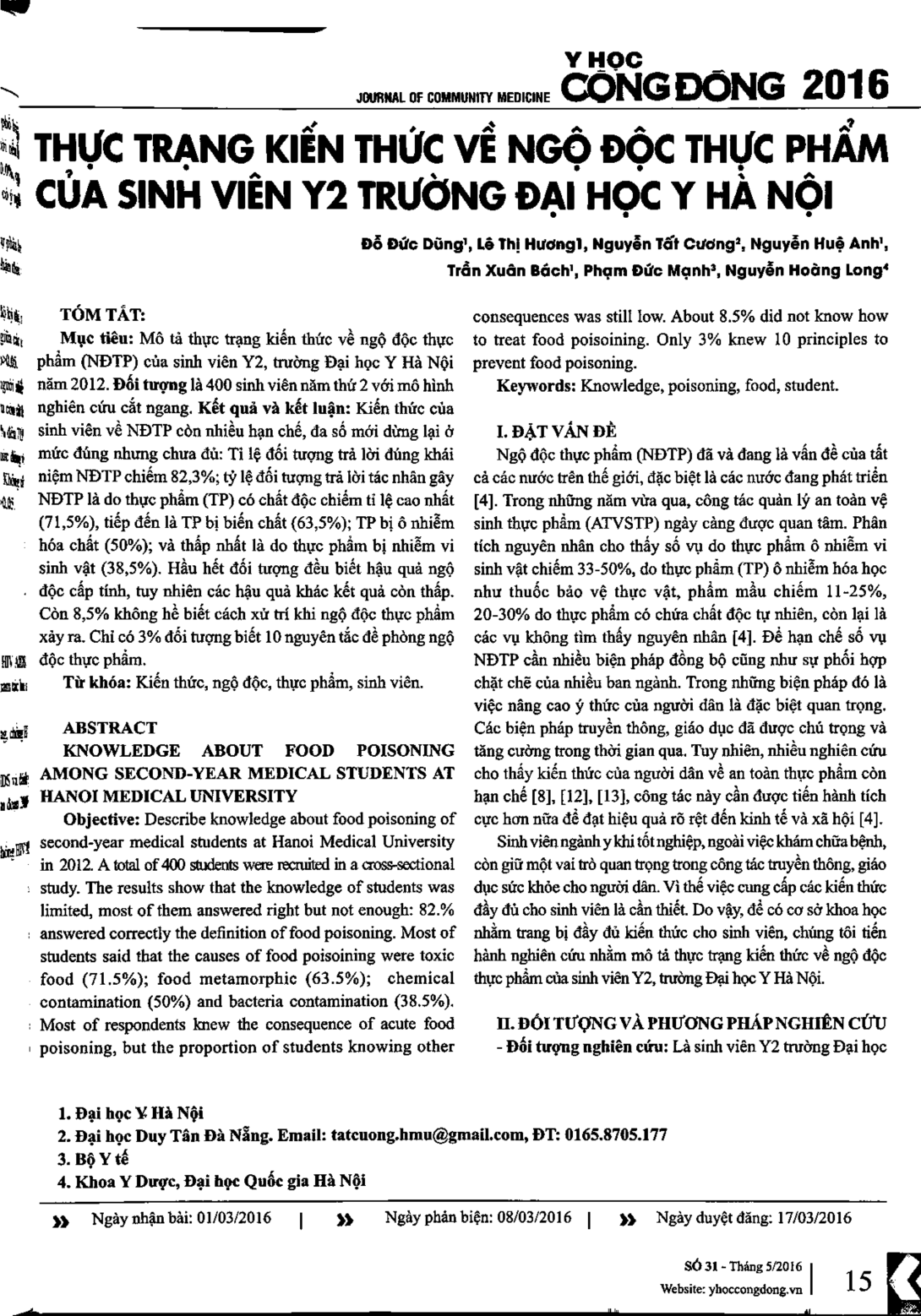 Thực trạng kiến thức về ngộ độc thực phẩm của sinh viên Y2 trường Đại học Y Hà Nội