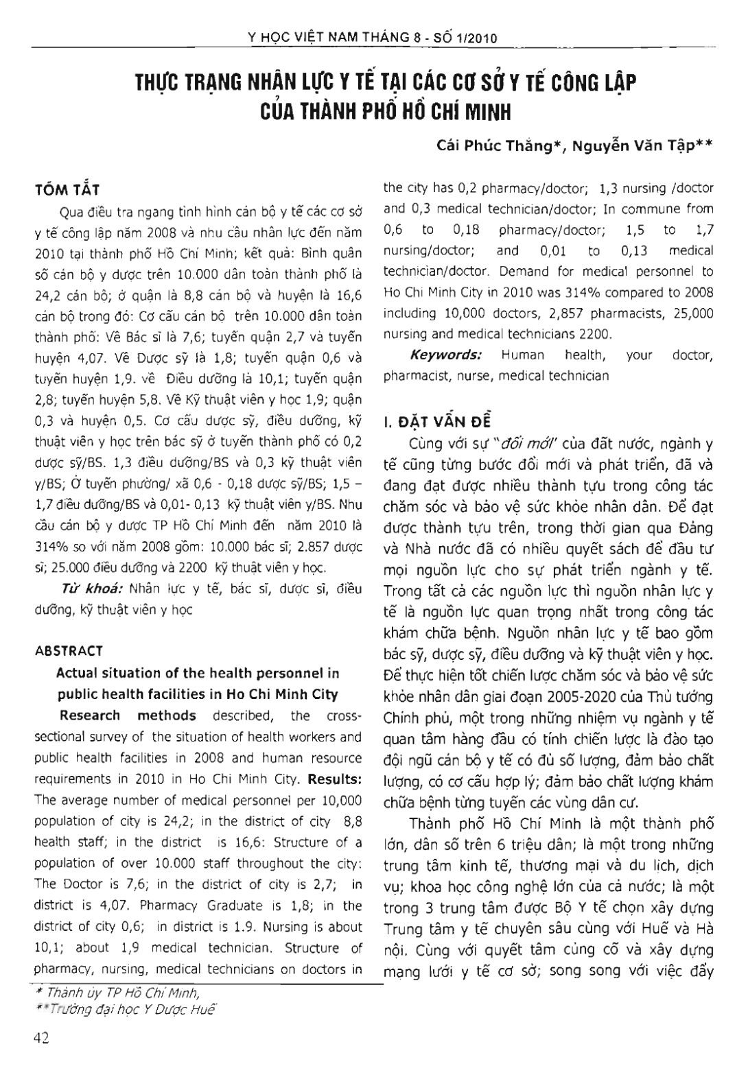 Thực trạng nhân lực y tế tại các cơ sở y tế công lập của thành phố Hồ Chí Minh