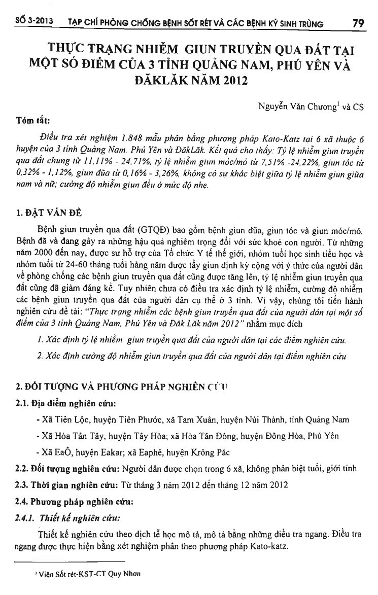 Thực trạng nhiễm giun truyền qua đất tại một số điểm của 3 tỉnh Quảng Nam, Phú Yên và Đắk Lắk năm 2012