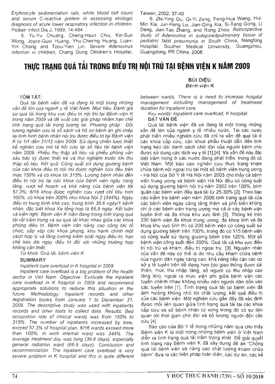Thực trạng quá tải trong điều trị nội trú tại bệnh viện K năm 2009