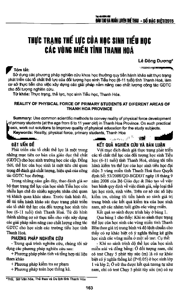 Thực trạng thể lực của học sinh tiểu học các vùng miền tỉnh Thanh Hóa