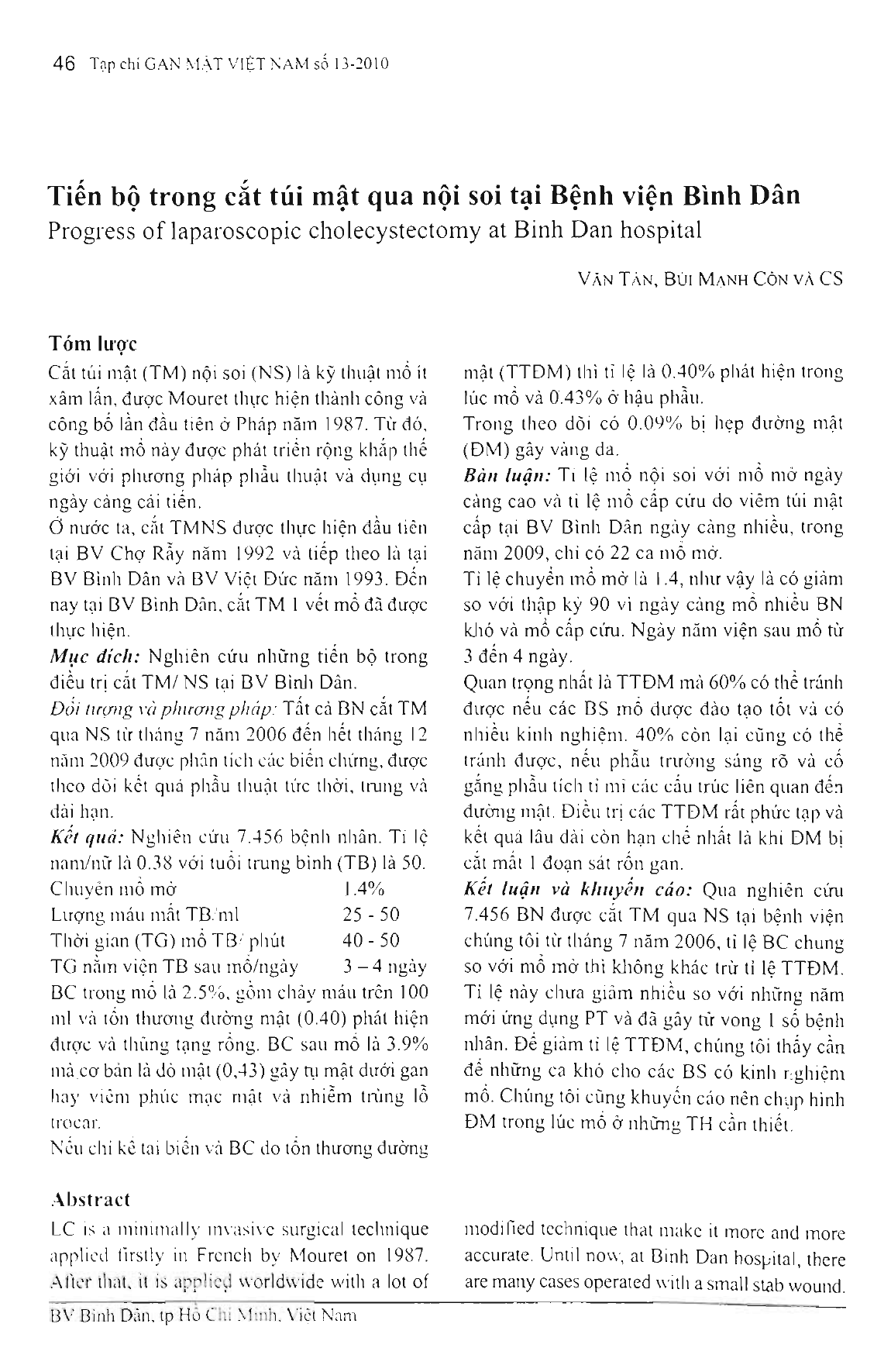 Tiến bộ trong cắt túi mật qua nội soi tại bệnh viện Bình Dân