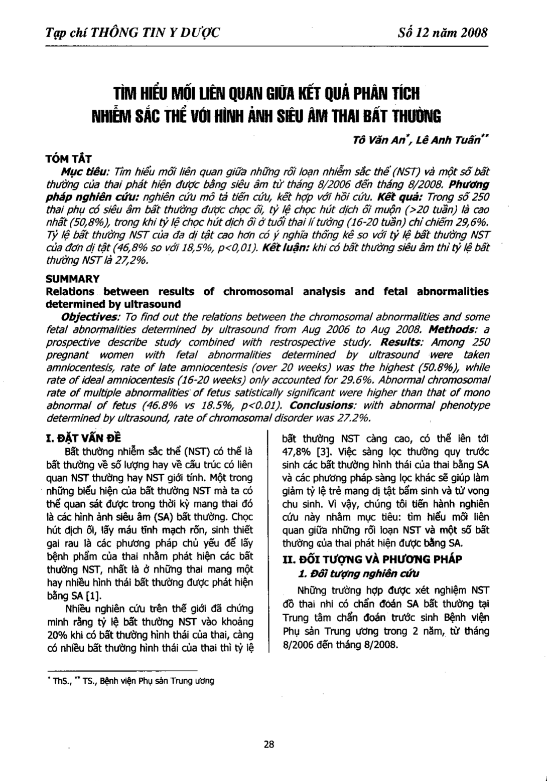 Tìm hiểu mối liên quan giữa kết quả phân tích nhiễm sắc thể với hình ảnh siêu âm thai bất thường