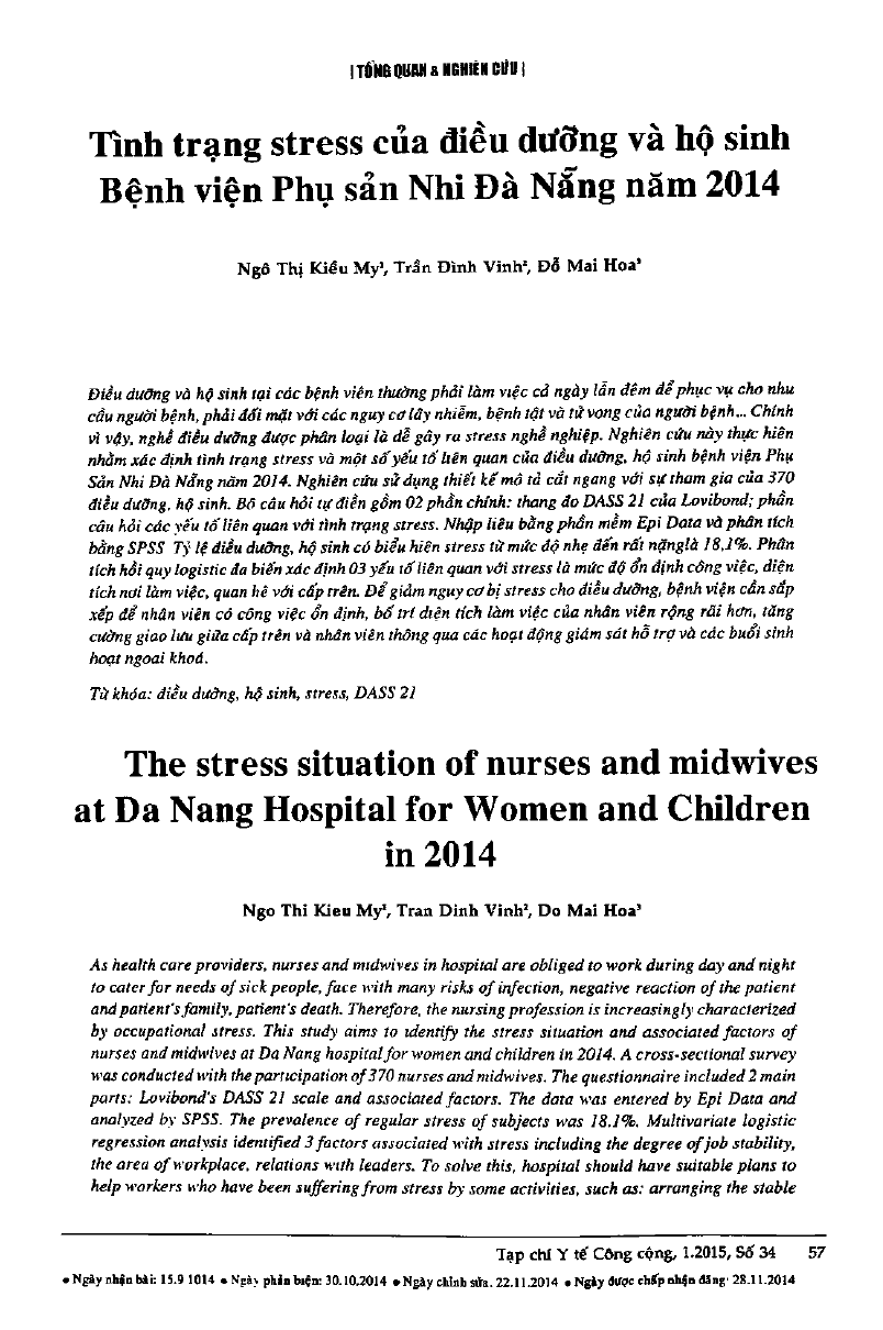 Tình trạng stress của điều dưỡng và hộ sinh Bệnh viện Phụ sản Nhi Đà Nẵng năm 2014