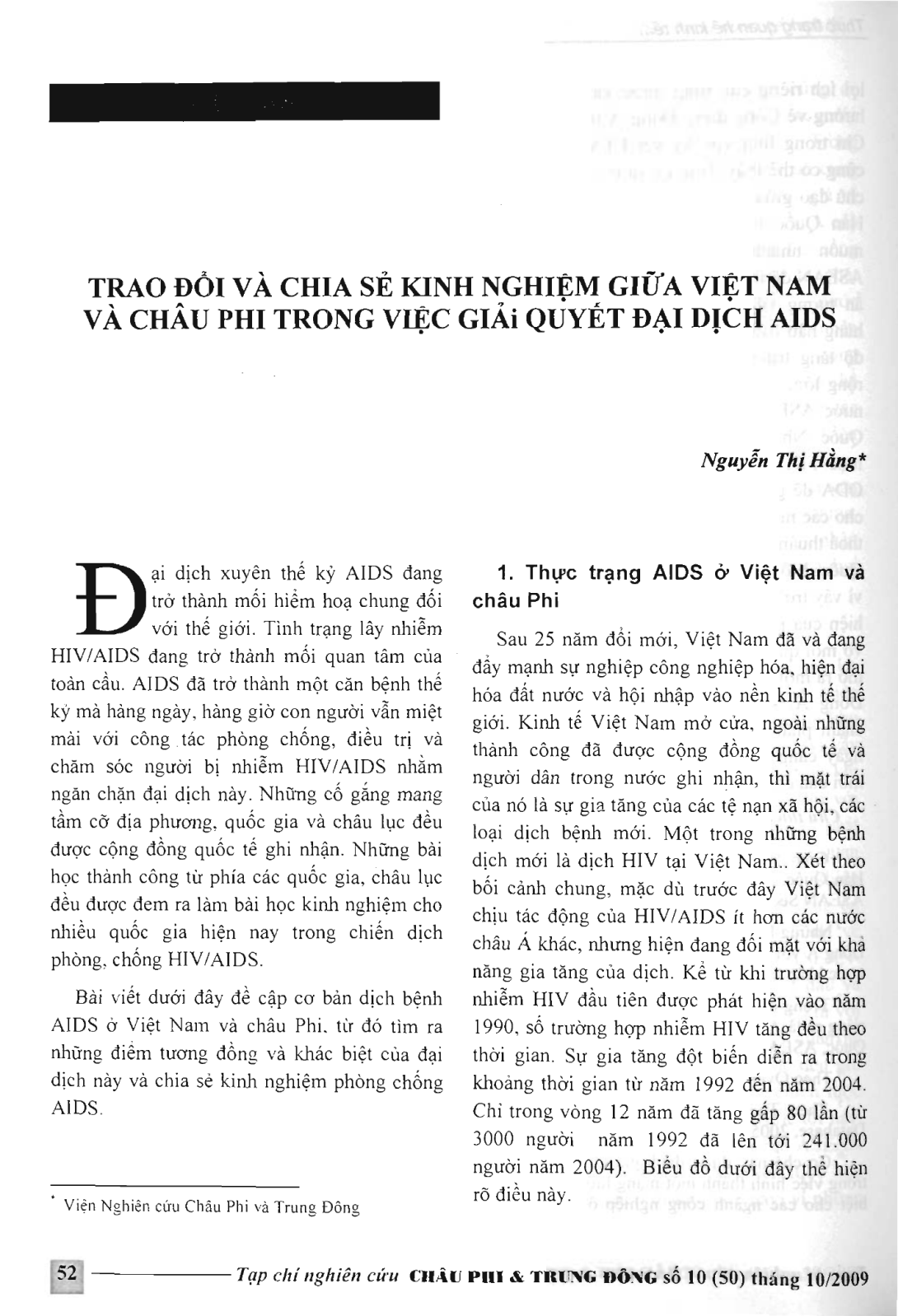 Trao đổi và chia sẻ kinh nghiệm giữa Việt Nam và châu Phi trong việc giải quyết đại dịch AIDS.