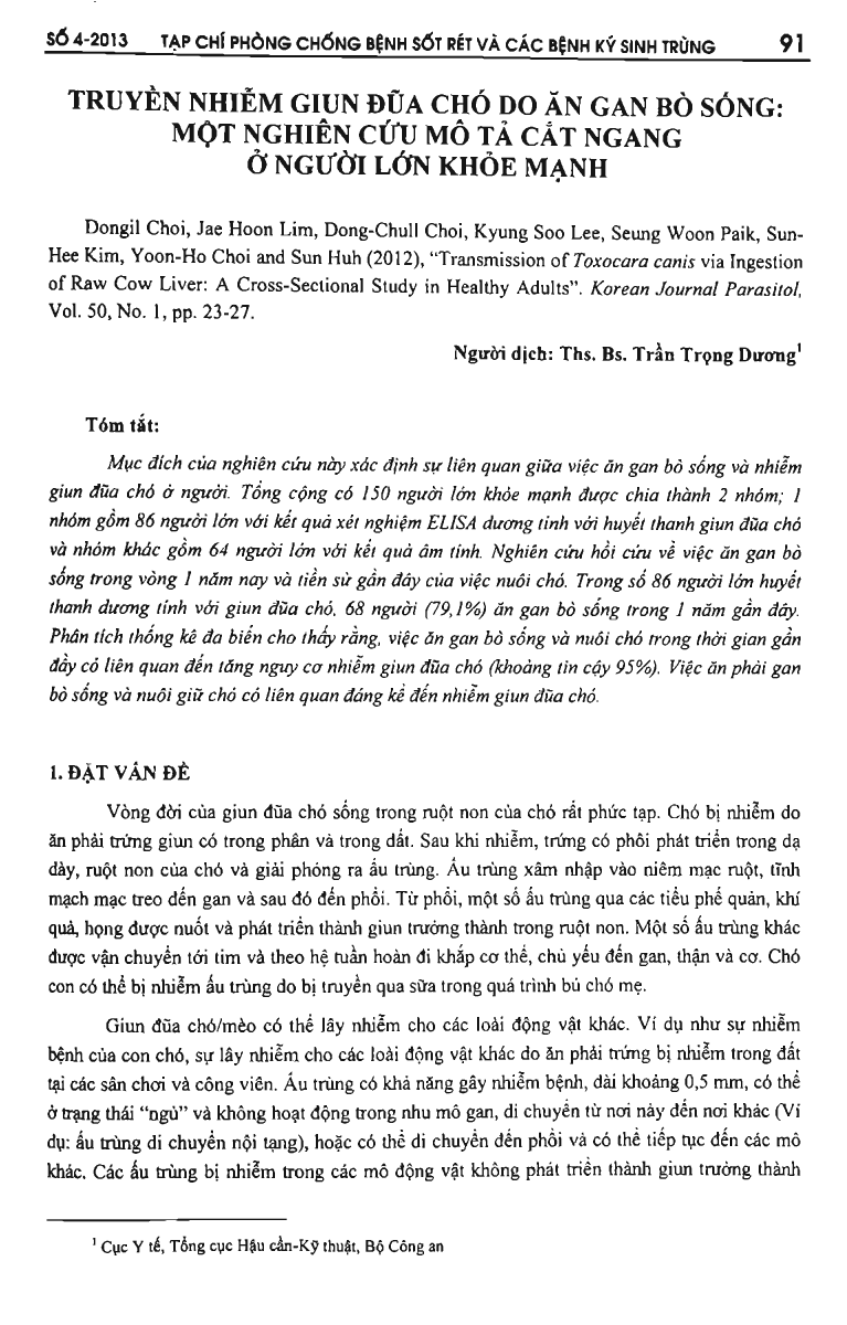 Truyền nhiễm giun đũa chó do ăn gan bò sống: Một nghiên cứu mô tả cắt ngang ở người lớn khỏe mạnh