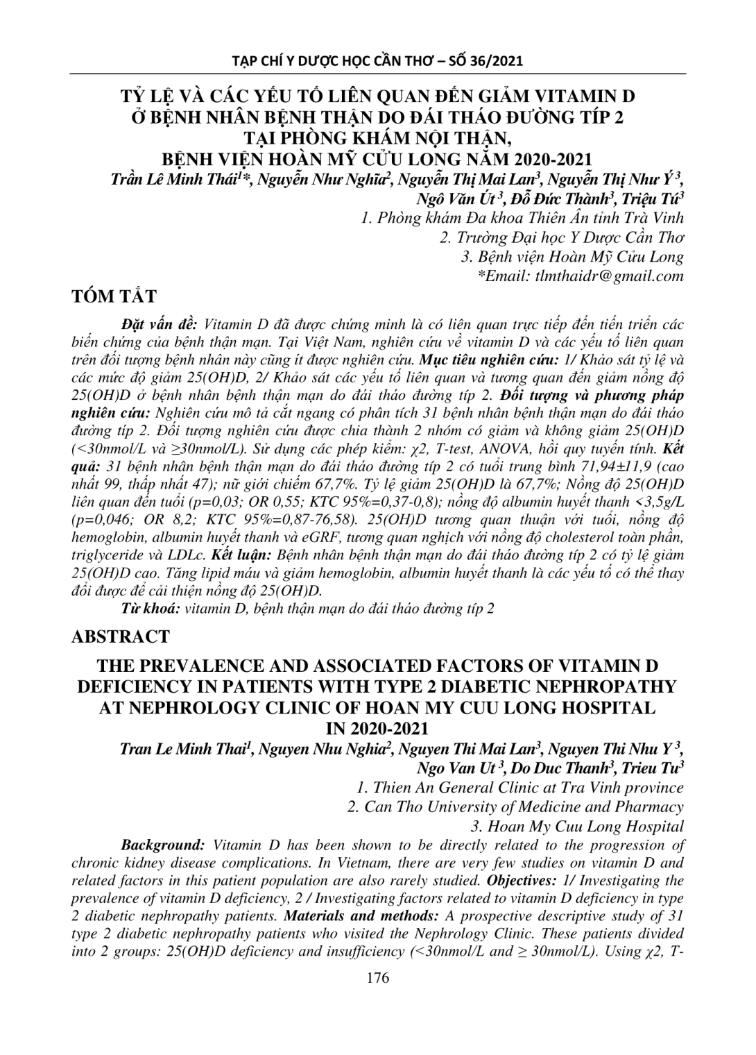 Tỷ lệ và các yếu tố liên quan đến giảm vitamin D ở bệnh nhân bệnh thận do đái tháo đường típ 2 tại Phòng khám Nội thận, Bệnh viện Hoàn Mỹ Cửu Long năm 2020-2021