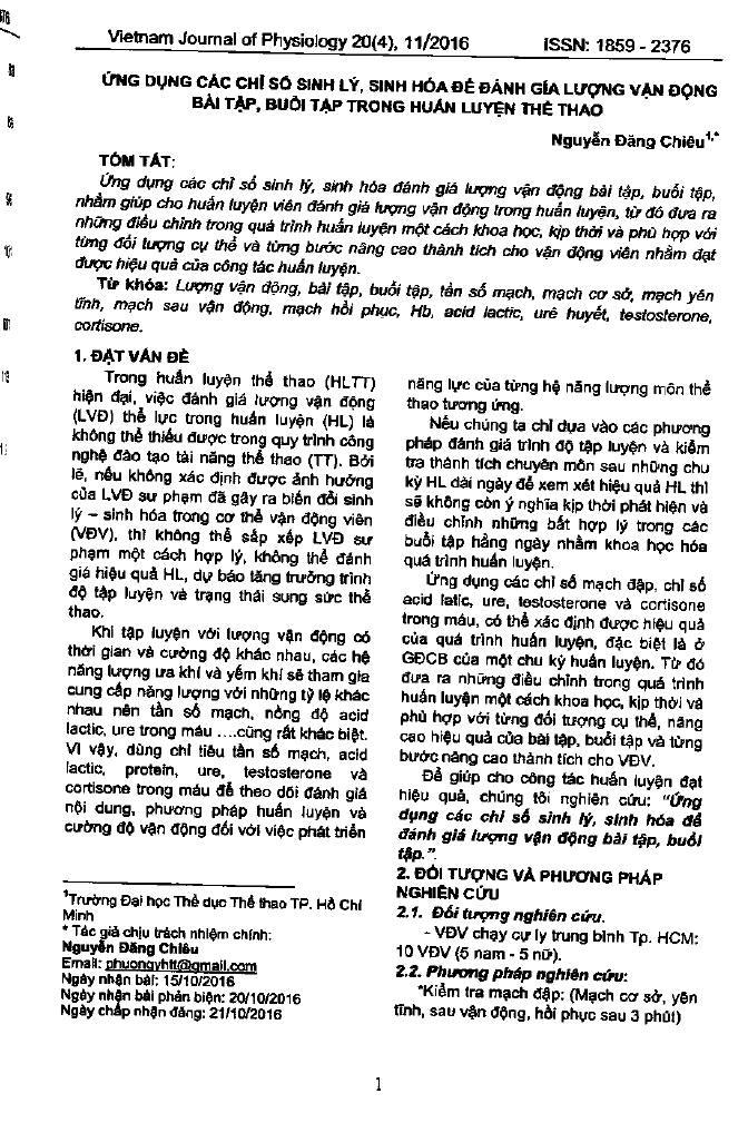 ứng dụng các chỉ số sinh lý, sinh hóa để đánh giá lượng vận động bài tập, buổi trong trong huấn luyện thể thao