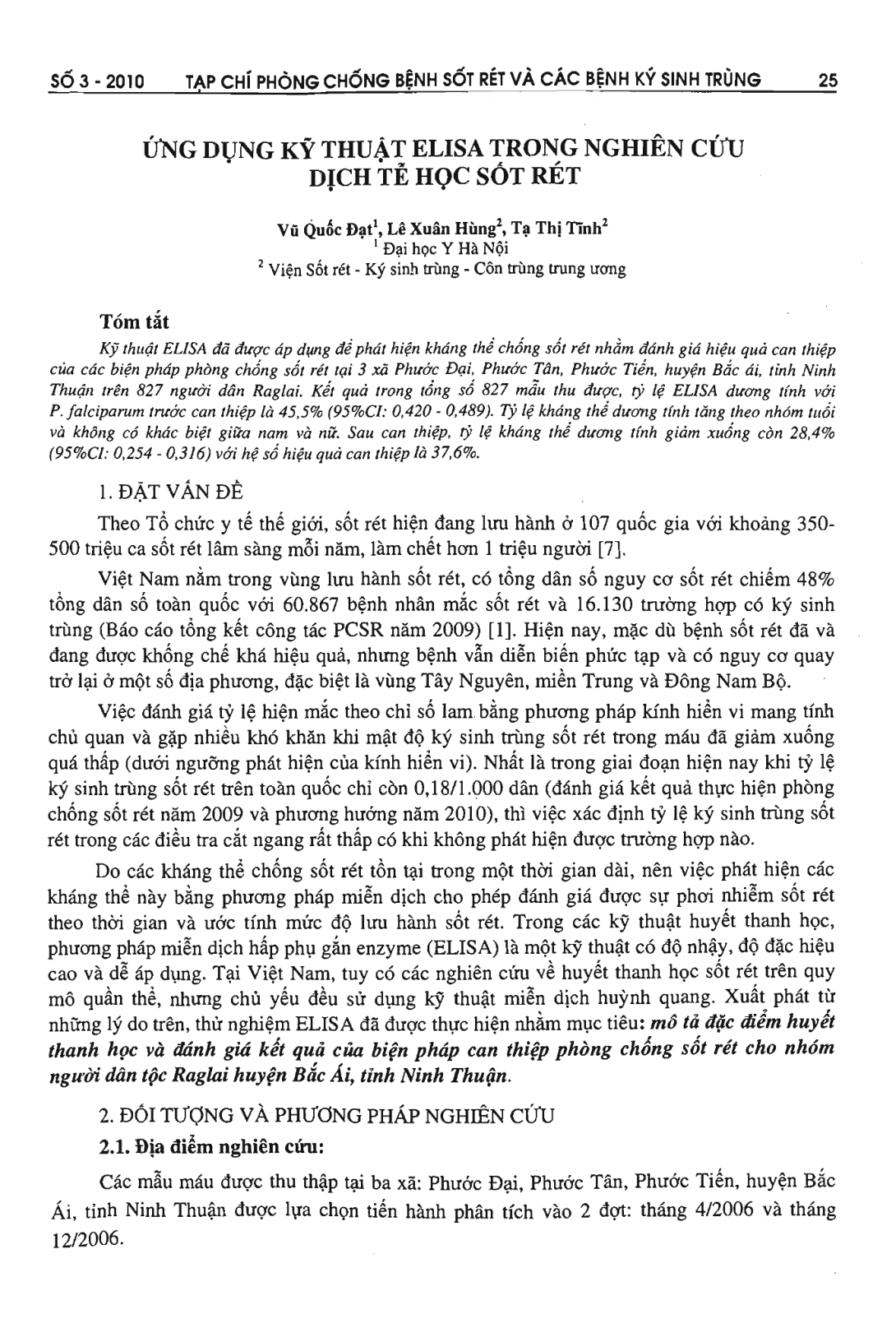 ứng dụng kỹ thuật Elisa trong nghiên cứu dịch tễ học sốt rét