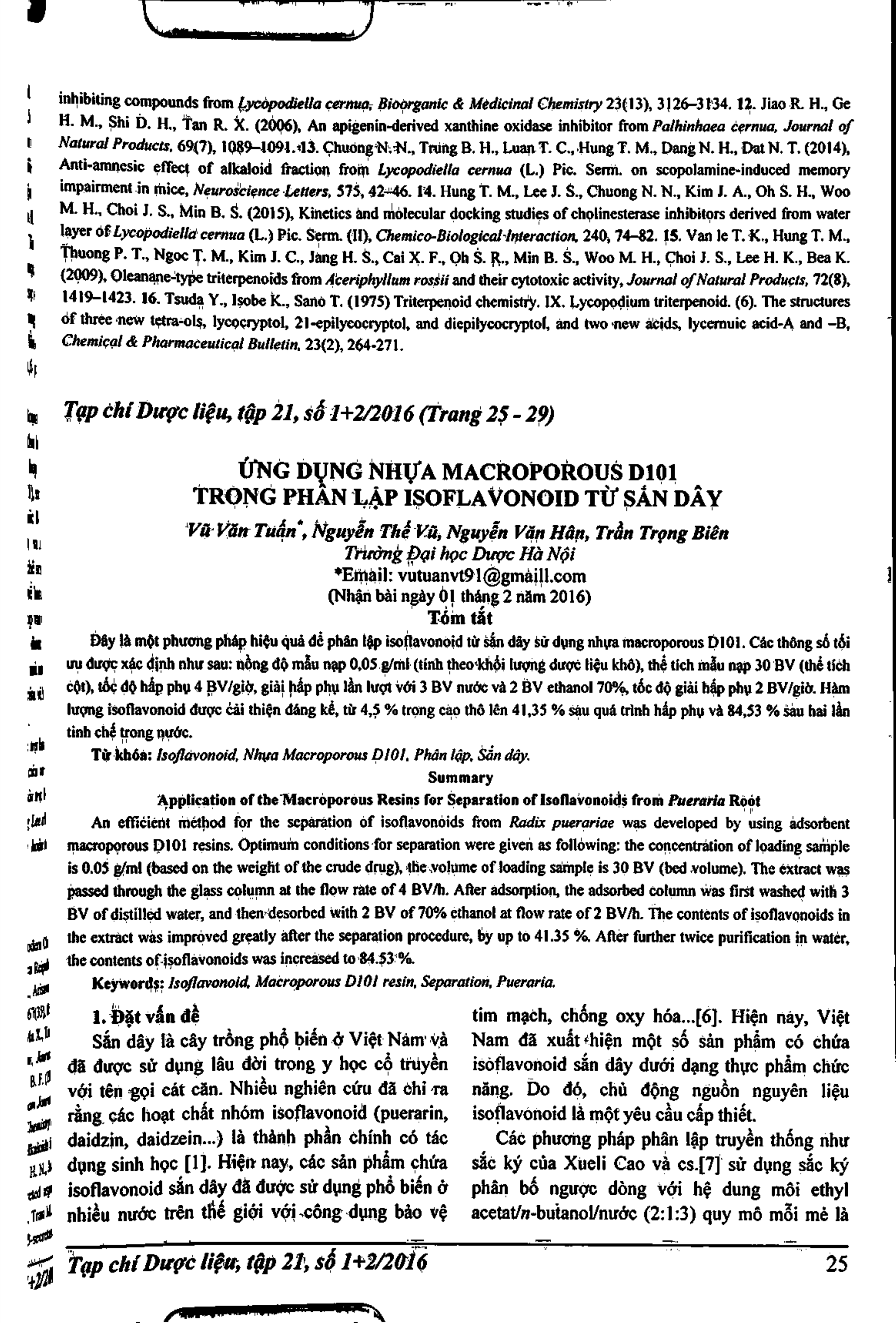 ứng dụng nhựa Macroporous D101 trong phân lập Isoflavonoid từ sắn dây