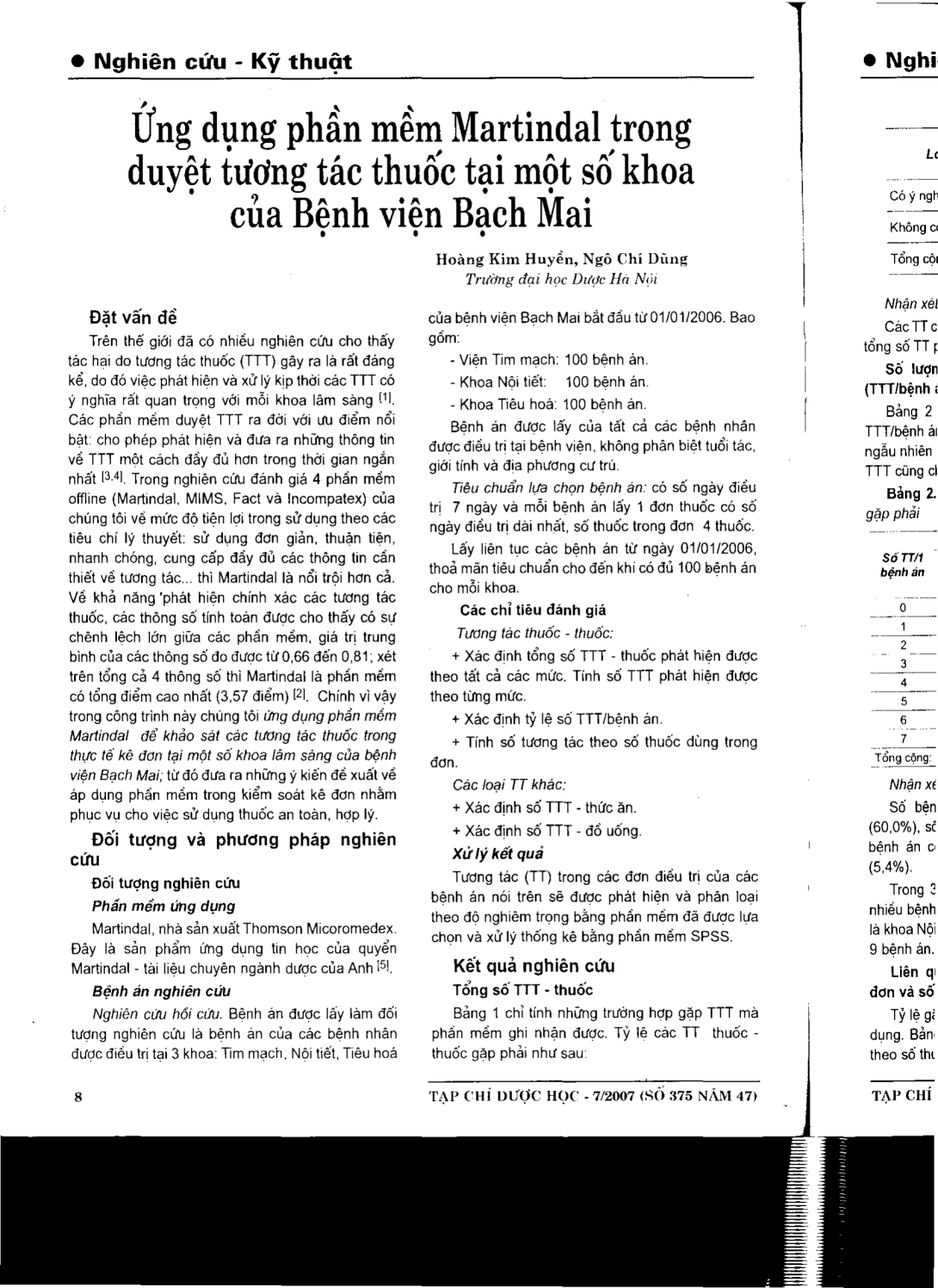 ứng dụng phần mềm Martindal trong duyệt tương tác thuốc tại một số khoa của Bệnh viện Bạch Mai