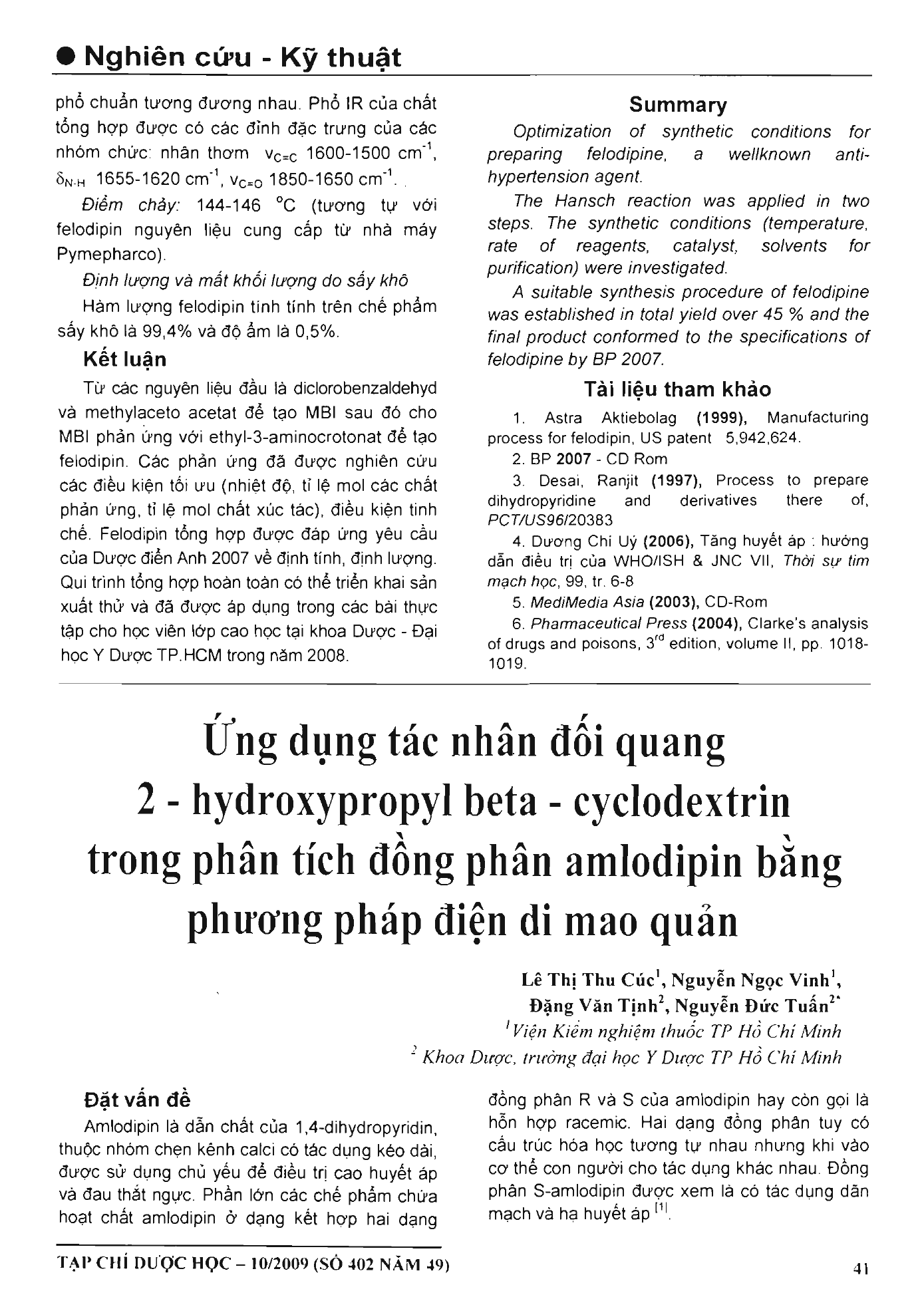 ứng dụng tác nhân đối quang 2-hydroxtpropyl beta-cyclodextrin trong phân tích đồng phân amlodipin bằng phương pháp điện di mao quản