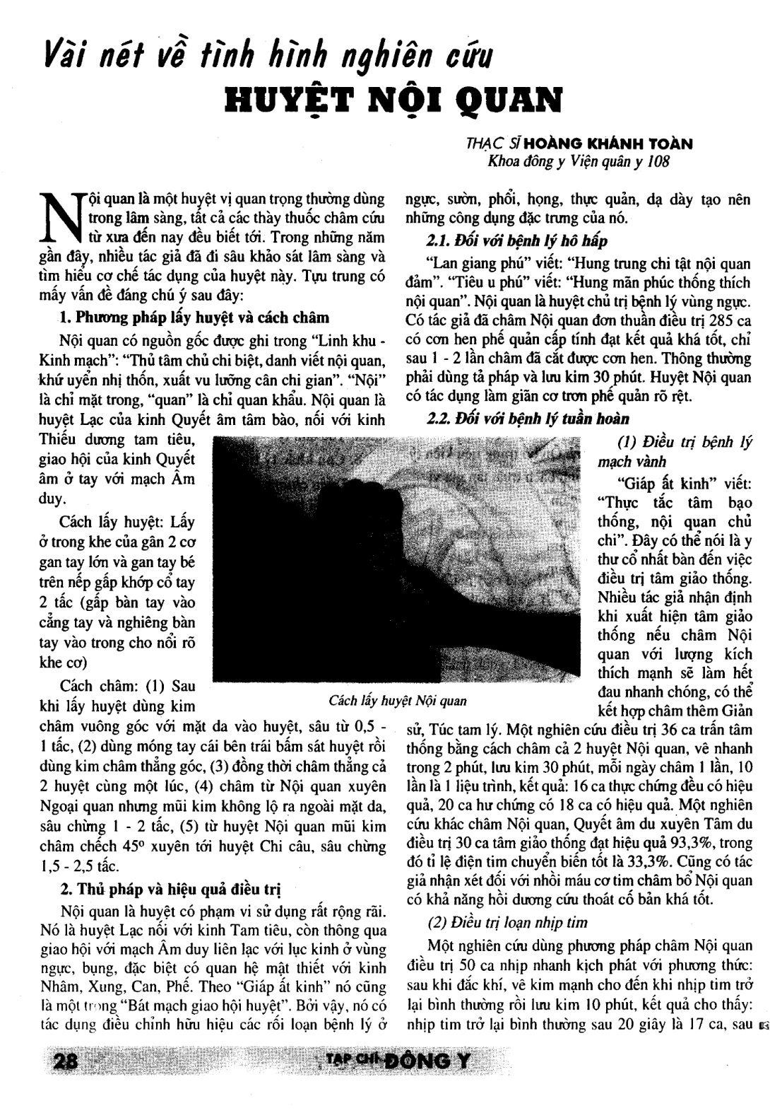 Vài nét về tình hình nghiên cứu huyệt nội quan