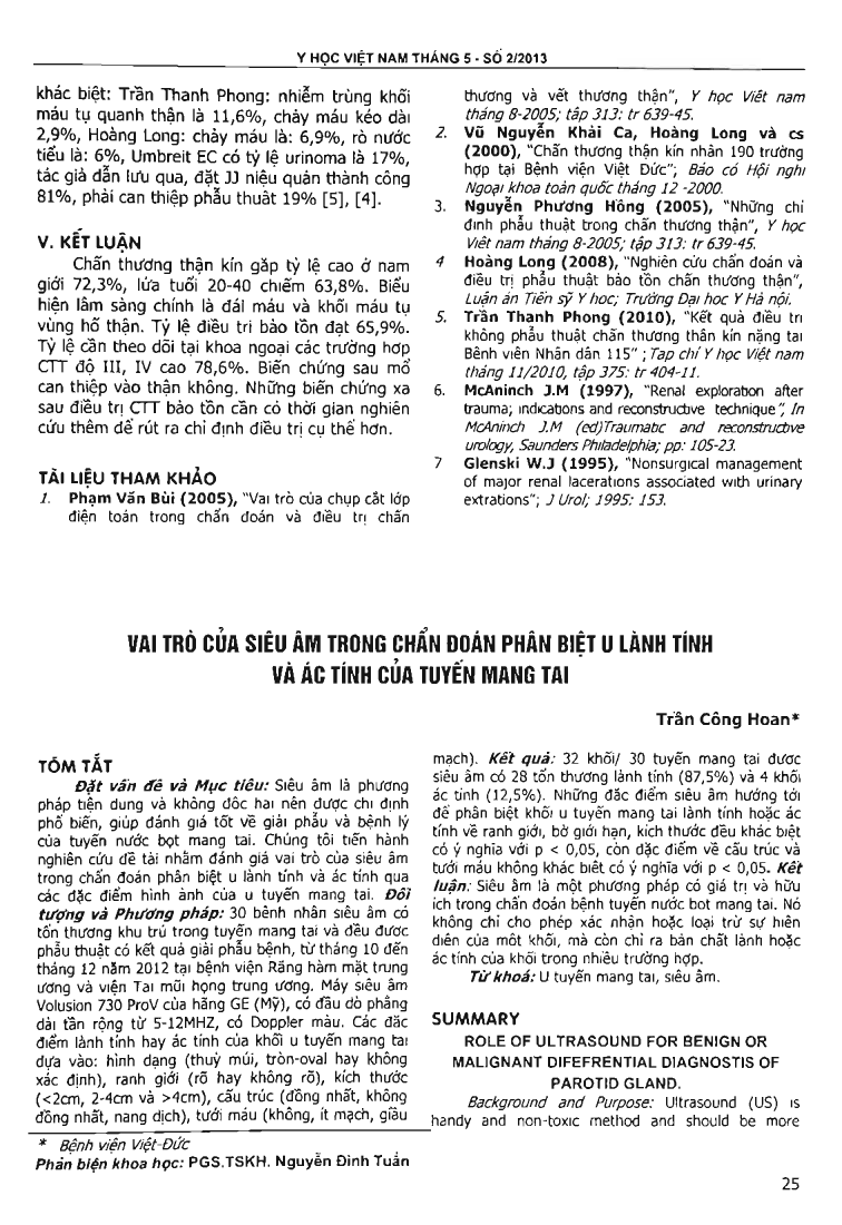 Vai trò của siêu âm trong chẩn đoán phân biệt u lành tính và ác tính của tuyến mang tai