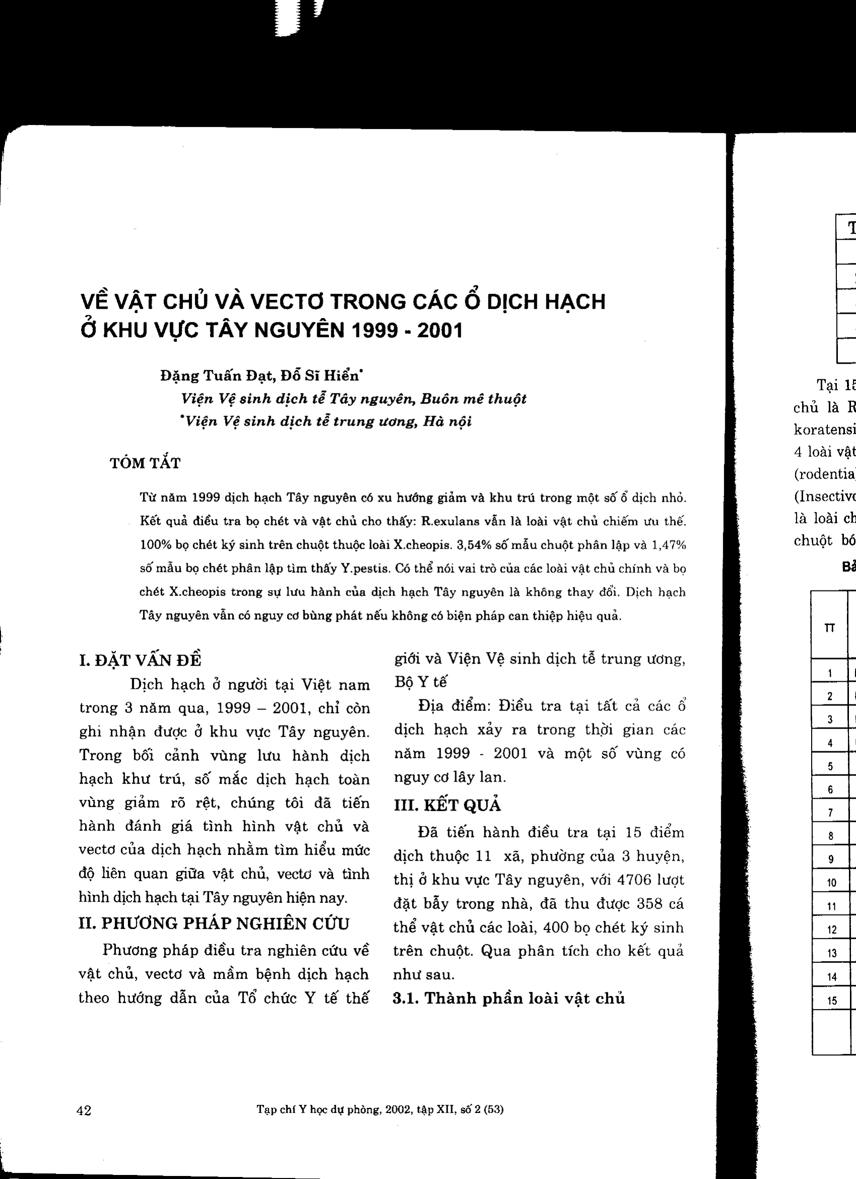 Về vật chủ và vectơ trong các ổ dịch hạch ở khu vực Tây Nguyên 1999-2001