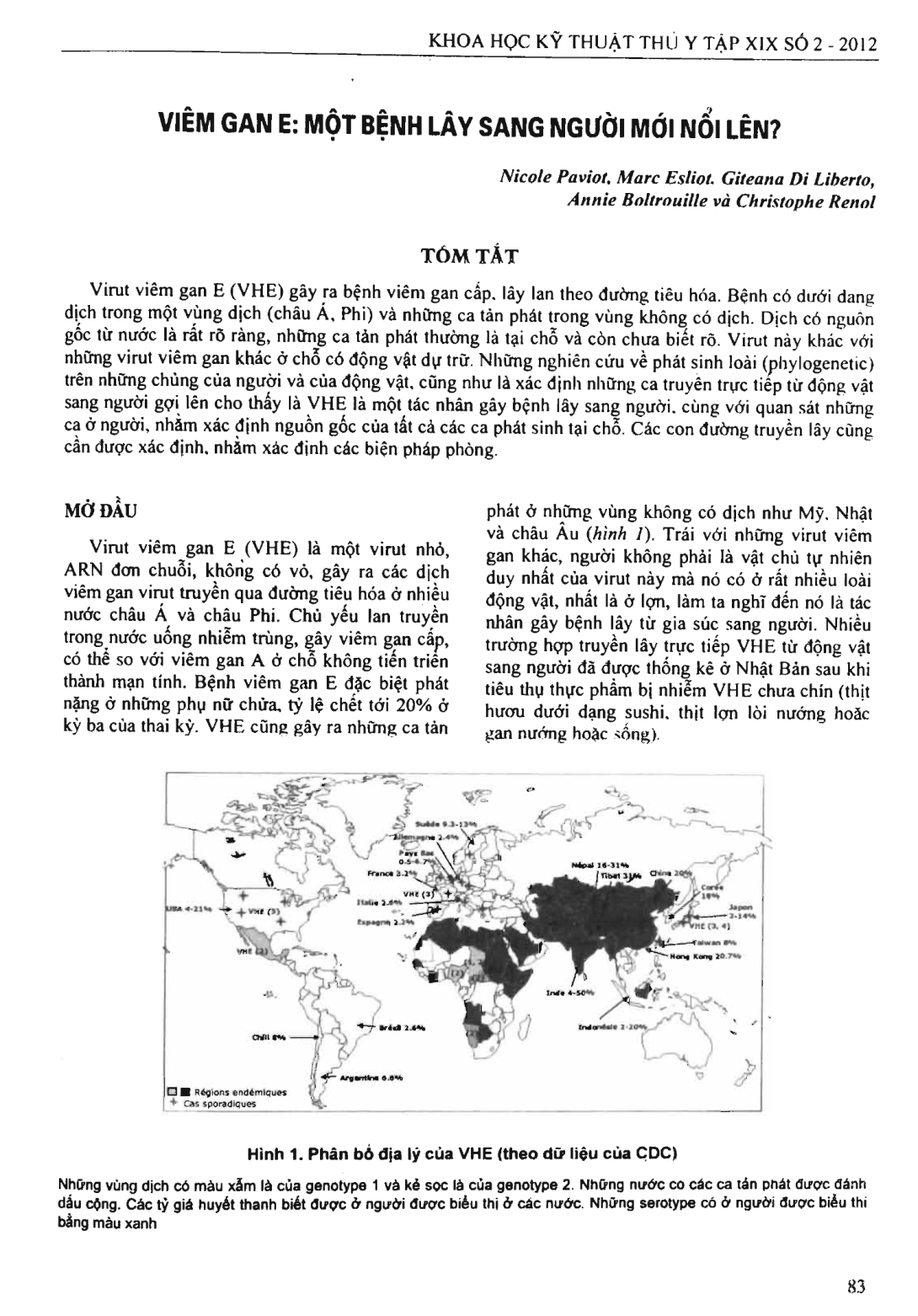 The phylogenetic studies on human and animal strains, as well as identification of cases of direct transmission from animals to humans, the paper suggests that: hepatitis E virus is a pathogen factor able infect to humans, the transmission path should be determined to have the precautions.