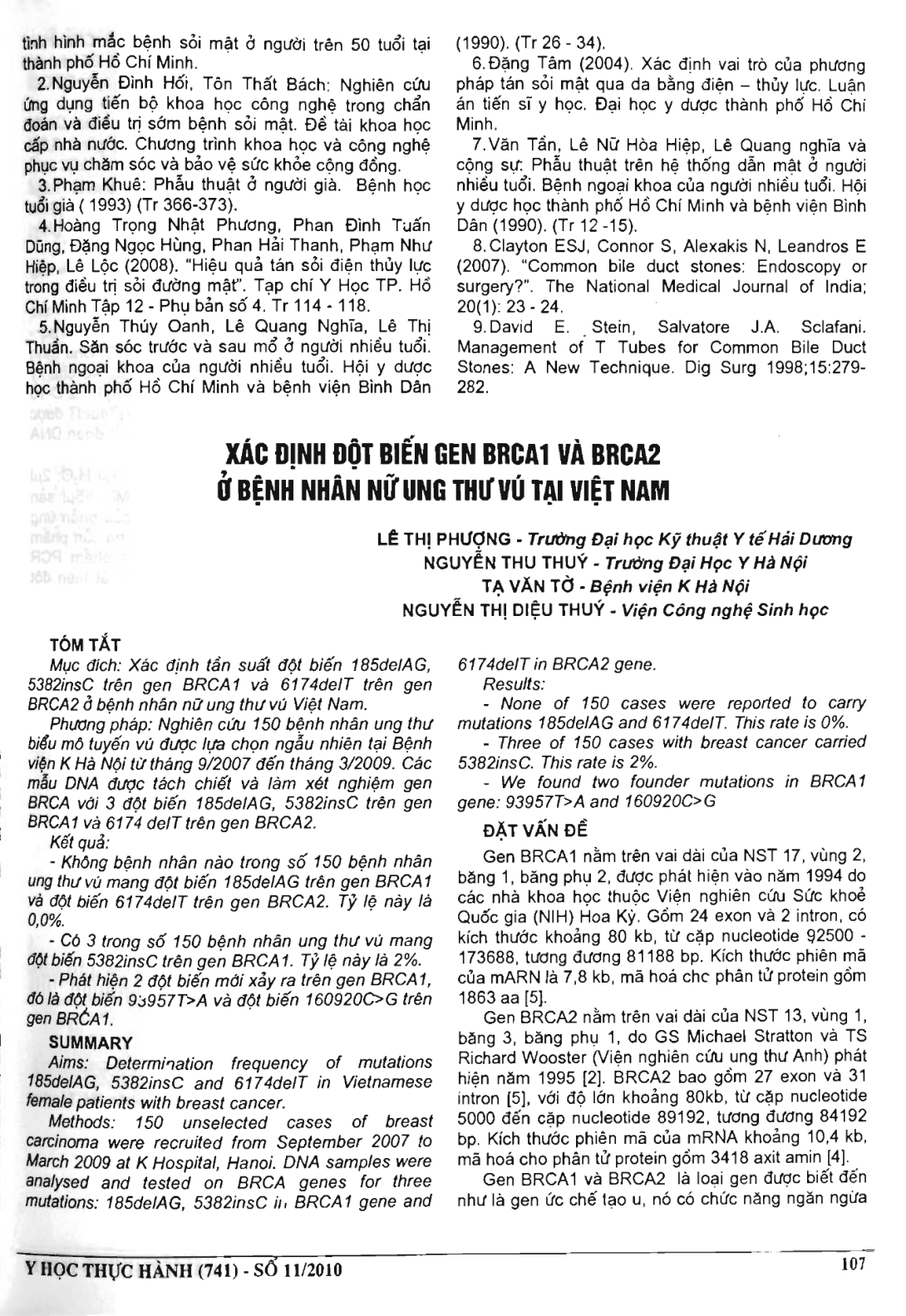 Xác định đột biến gen BRCA1 và BRCA2 ở bệnh nhân nữ ung thư vú tại Việt Nam