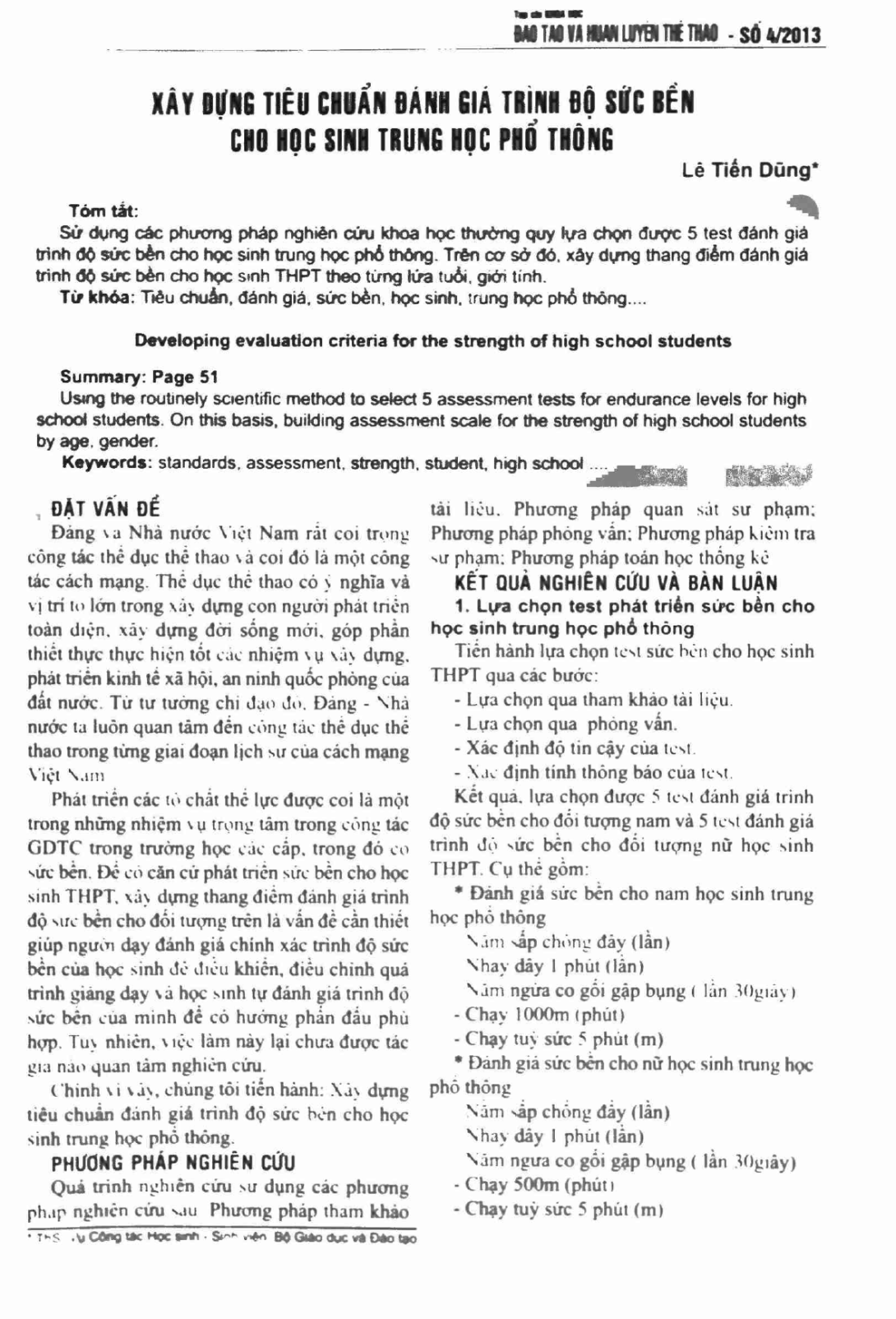 Xây dựng tiêu chuẩn đánh giá trình độ sức bền cho học sinh phổ thông