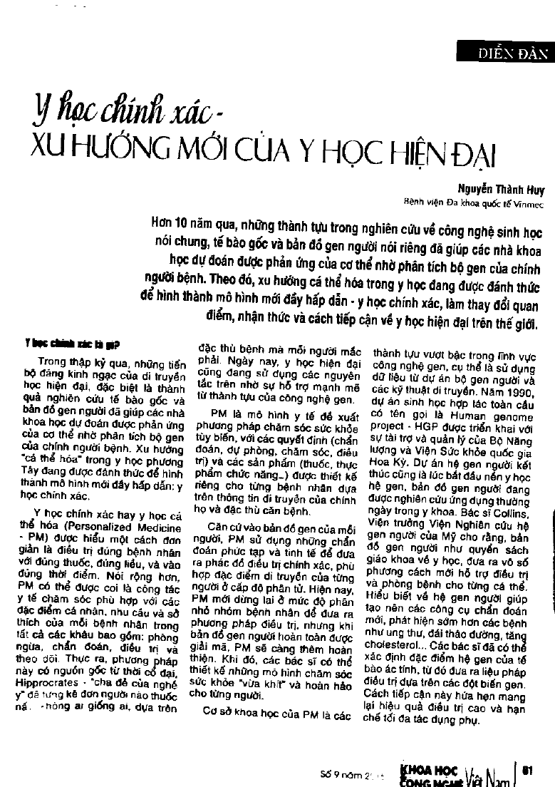 Y học chính xác - xu hướng mơi của y học hiện đại