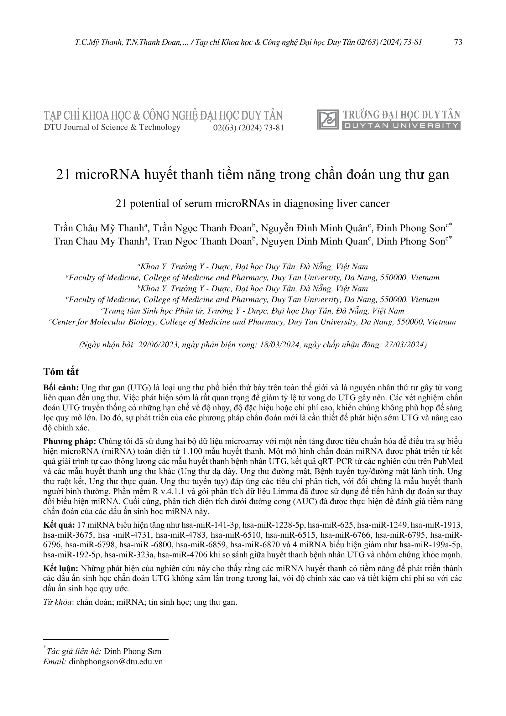 Ung thư gan (UTG) là loại ung thư phổ biến thứ bảy trên toàn thế giới và là nguyên nhân thứ tư gây tử vong liên quan đến ung thư. Việc phát hiện sớm là rất quan trọng để giảm tỷ lệ tử vong do UTG gây nên. Các xét nghiệm chẩn đoán UTG truyền thống có những hạn chế về độ nhạy, độ đặc hiệu hoặc chi phí cao, khiến chúng không phù hợp để sàng lọc quy mô lớn. Do đó, sự phát triển của các phương pháp chẩn đoán mới là cần thiết để phát hiện sớm UTG và nâng cao độ chính xác.