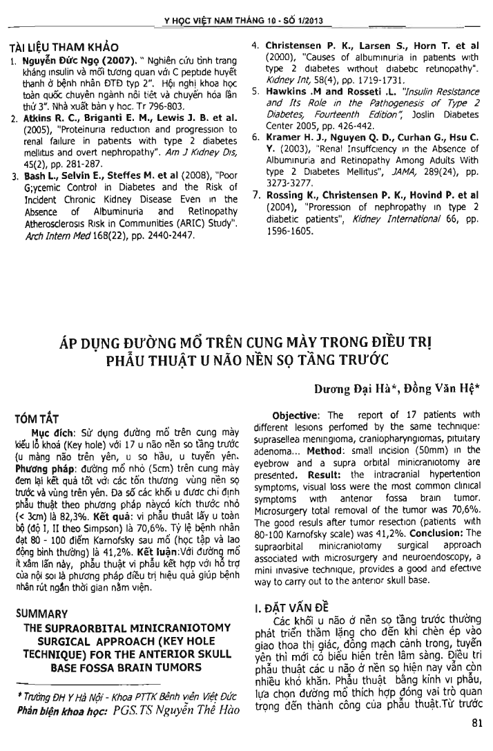 Objective: The report of 17 patients with different lesions perfomed by the same technique: suprasellea meningioma, crahiopharyngiomas, pituitary adenoma... Method: small incision (50 mm) in the eyebrow and a supra orbital minicraniotomy are presented. Result: the intracranial hypertention symptoms, visual loss were the most common clinical symptoms with anterior fossa brain tumor. Microsurgery total removal of the tumor was 70,6 percent. The good resuls after tumor resection (patients with 80-100 Karnofsky scale) was 41,2 percent. Conclusion: The supraorbital minicraniotomy surgical approach associated with microsurgery and neuroendoscopy, a mini invasive technique, provides a good and effective way to carry out to the anterior skull base.