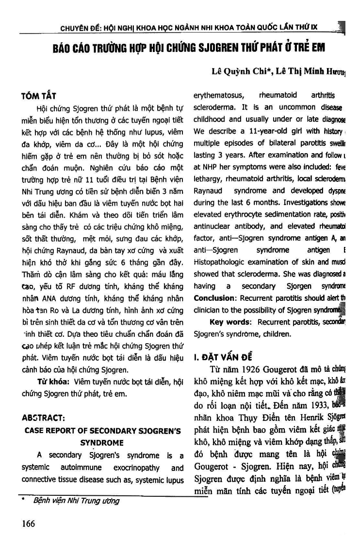 Báo cáo trường hợp hội chứng Sjogren thứ phát ở trẻ em