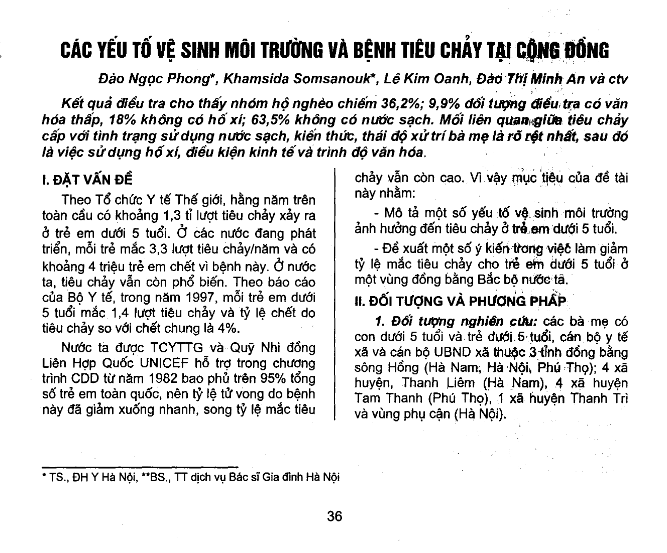 Các yếu tố vệ sinh môi trường và bệnh tiêu chảy tại cộng đồng