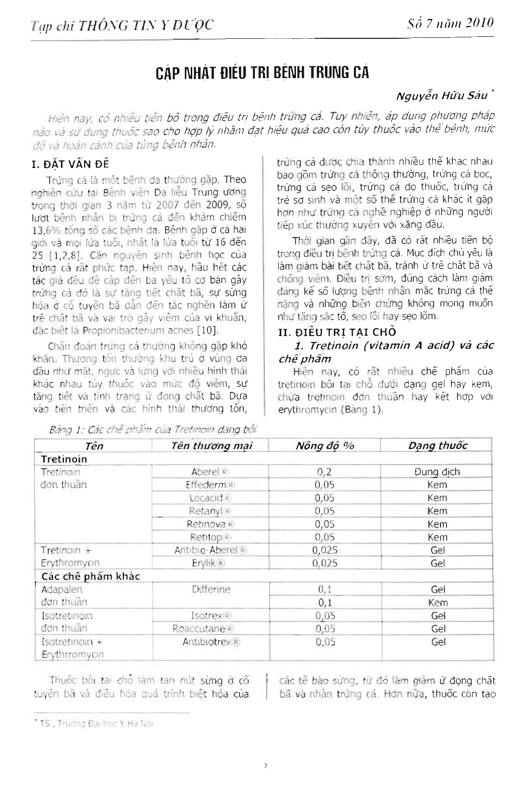 Cập nhật điều trị bệnh trứng cá