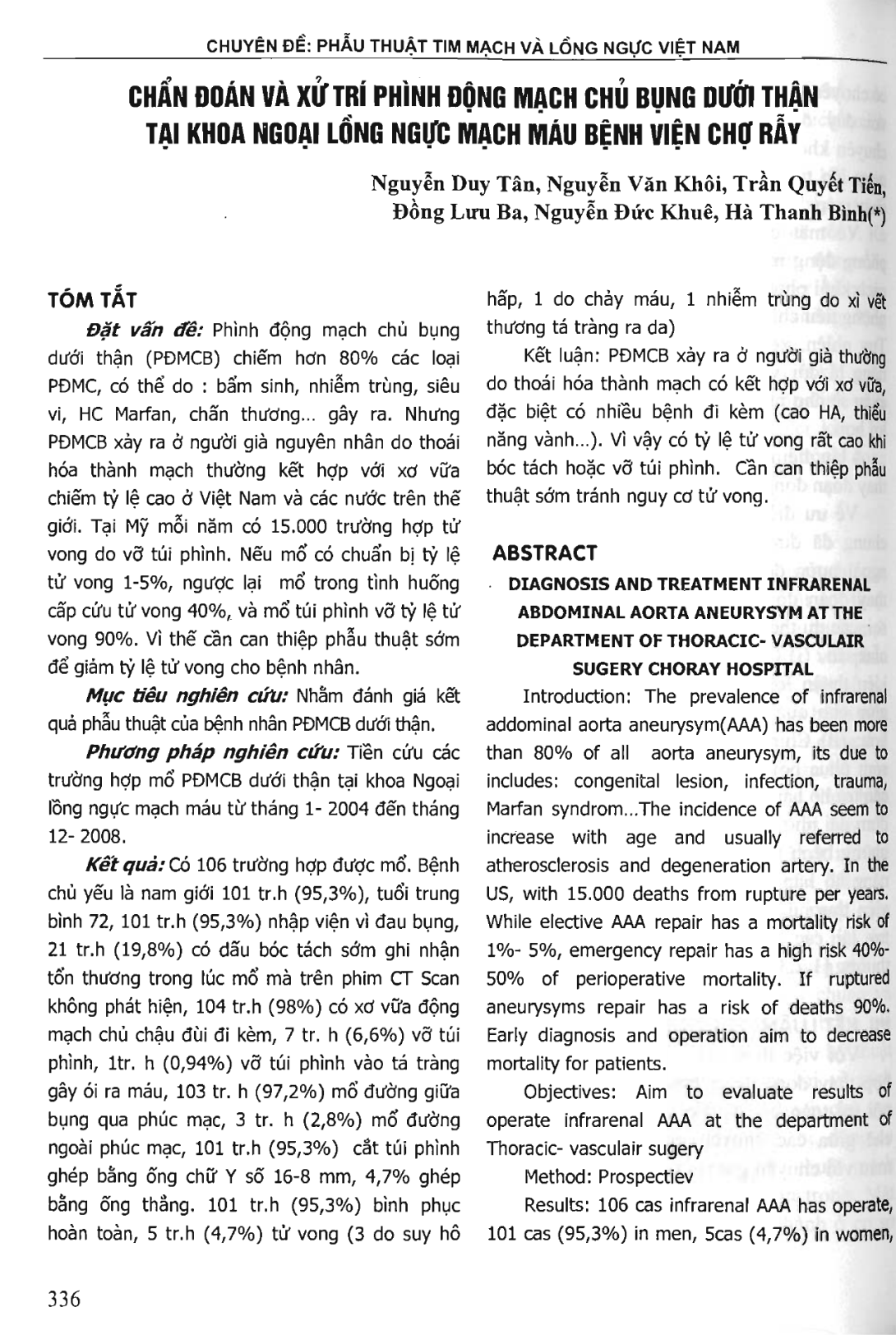Chẩn đoán và xử trí phình động mạch chủ bụng dưới thận tại khoa ngoại lồng ngực mạch máu bệnh viện Chợ Rẫy