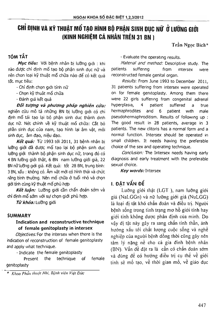 Chỉ định và mổ tạo hình bộ phận sinh dục nữ ở lưỡng giới (kinh nghiệm cá nhân trên 31 bệnh nhân)