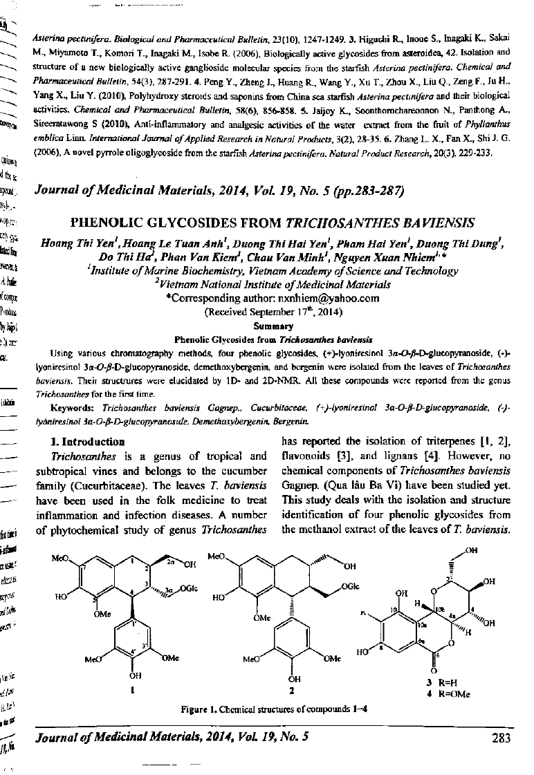Chiết xuất Glycosides phenolic từ quả dưa núi thuộc chi Trichosanthes baviensis
