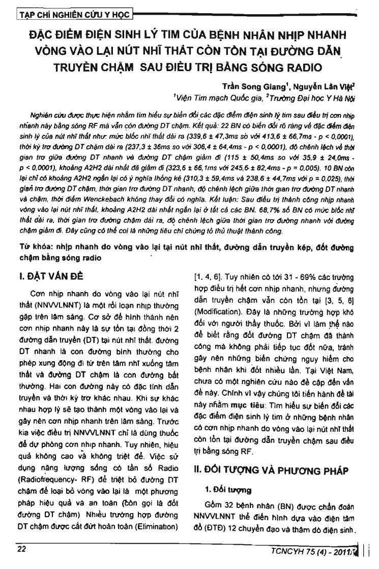 Đặc điểm điện sinh lý tim của bệnh nhân nhịp nhanh vòng vào lại nút nhĩ thất còn tồn tại đường dẫn truyền chậm sau điều trị bằng sóng radio