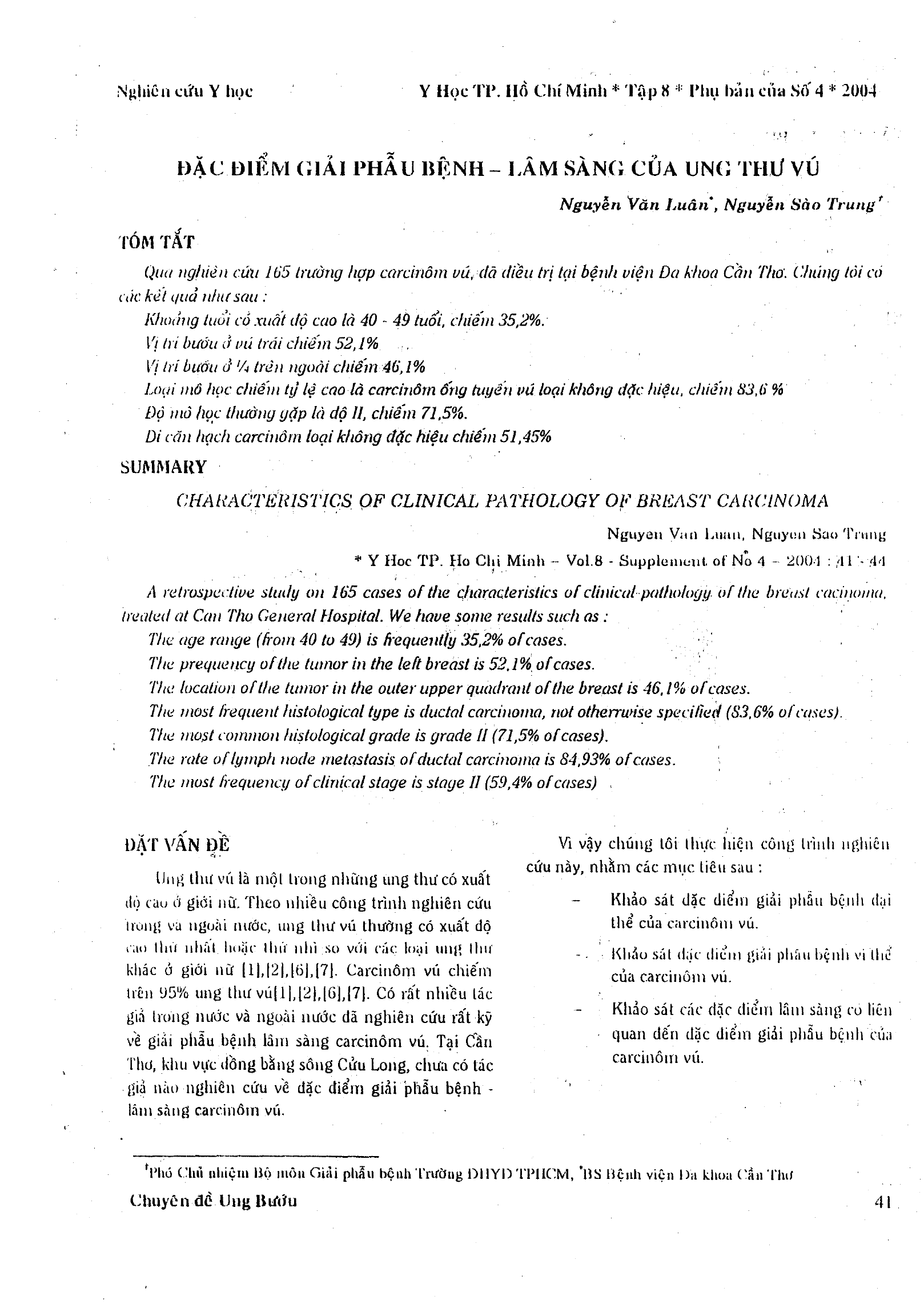 Đặc điểm giải phẫu bệnh - lâm sàng của ung thư vú