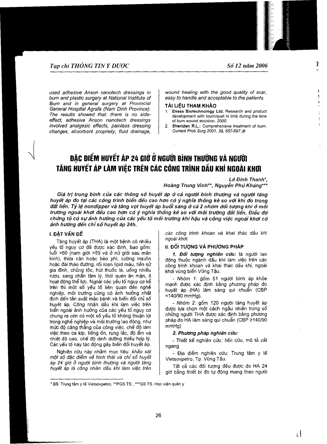Đặc điểm huyết áp 24 giờ ở người bình thường và người tăng huyết áp làm việc trên các công trình dầu khí ngoài khơi