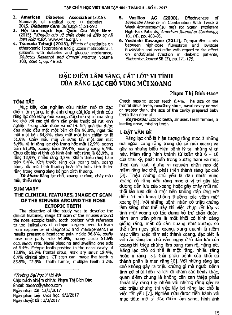 Đặc điểm lâm sàng, cắt lớp vi tính của răng lạc chỗ vùng mũi xoang