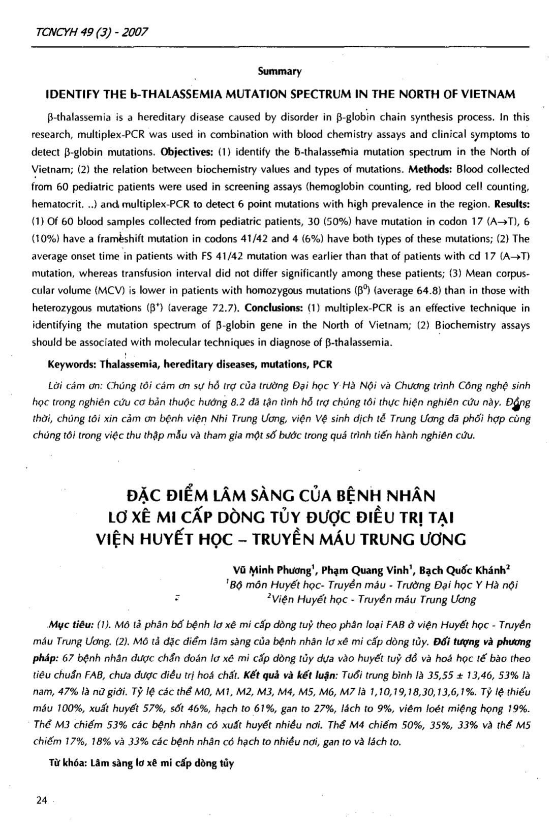 Đặc điểm lâm sàng của bệnh nhân Lơxemi cấp dòng tuỷ được điều trị tại Viện Huyết học - Truyền máu Trung ương